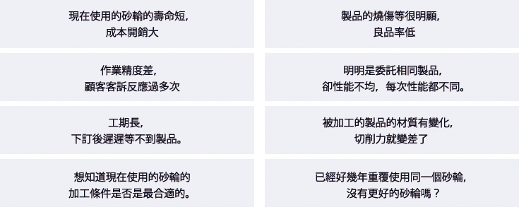 藉此可以讓顧客更輕易、划算地導入訂做砂輪。